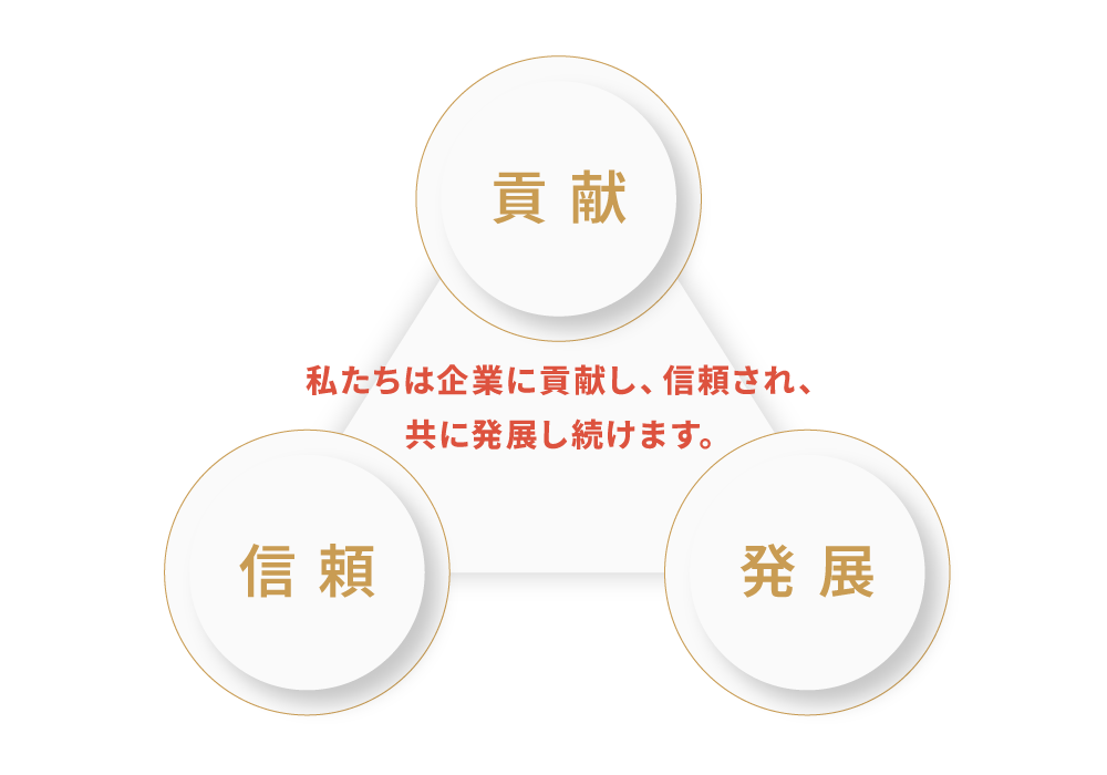 発展:信頼を基に企業に発展していただくことで、私たちも共に発展し続けます。
